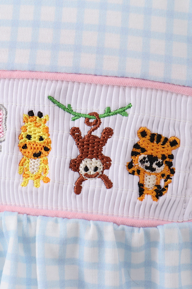 Blue animal smocked ruffle bloomer set