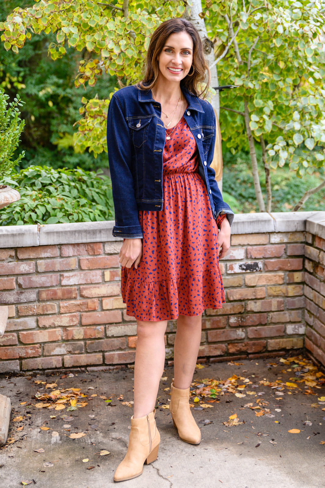 A cute look starts with the Most Genuine Spotted Dress In Rust! This darling dress features a lightweight, non stretch fabric that shapes a v-neckline and long sleeves with elastic cuffs and waist line. A mini length skirt has a flowy fit, finished with a ruffle hem and inner lining.