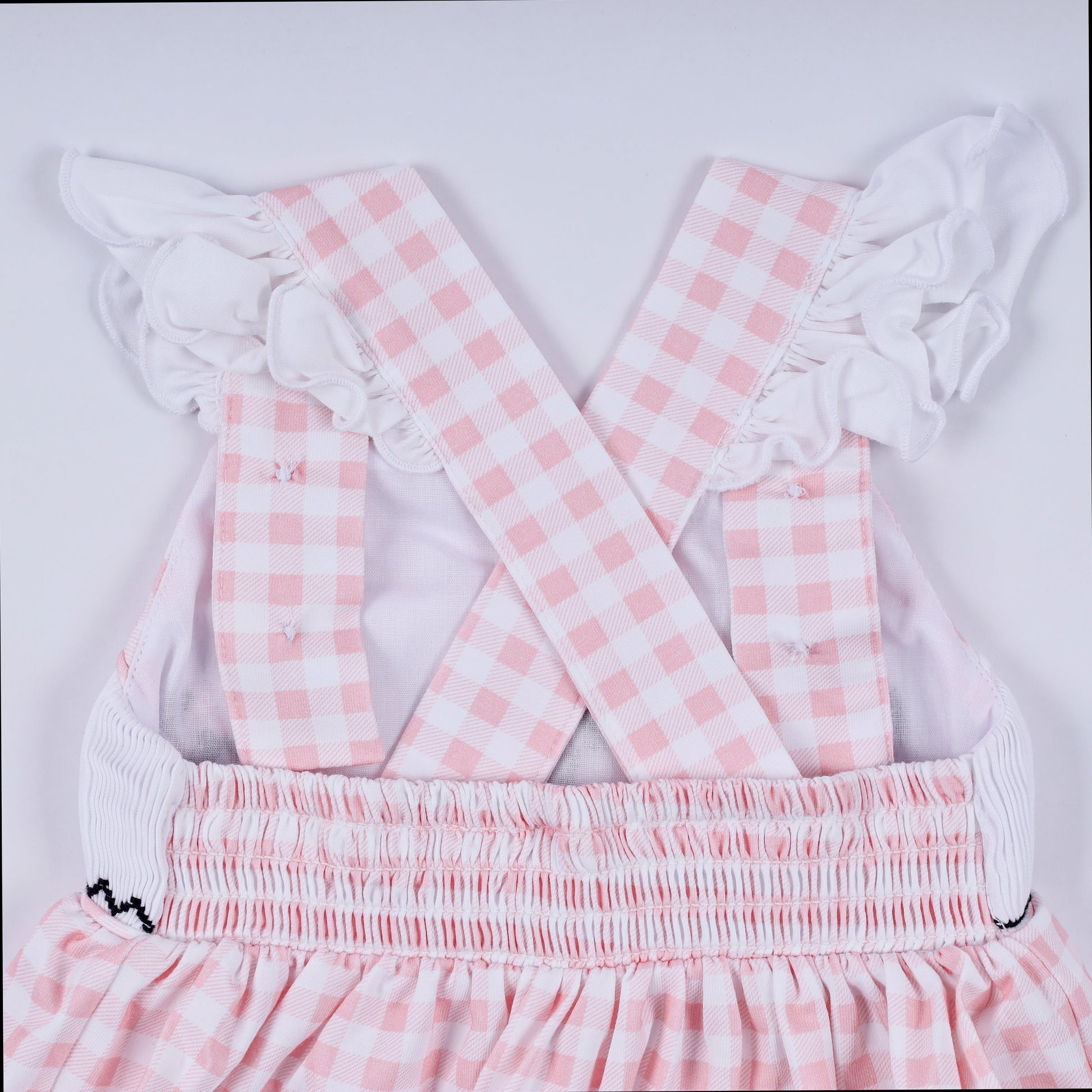 Meet the sweetest addition to your little one's wardrobe! This charming bubble features delicate hand-smocked detailing paired with cheerful gingham patterns and whimsical character accents. Soft ruffles frame the neckline and sleeves for an extra touch of personality. Perfect for playdates, family gatherings, or everyday adventures, this playful piece combines comfort with undeniable charm. Your kiddo will love the fun character design while you'll appreciate the quality craftsmanship that keeps up with active play.
