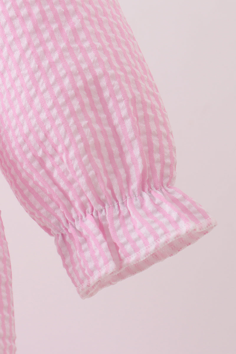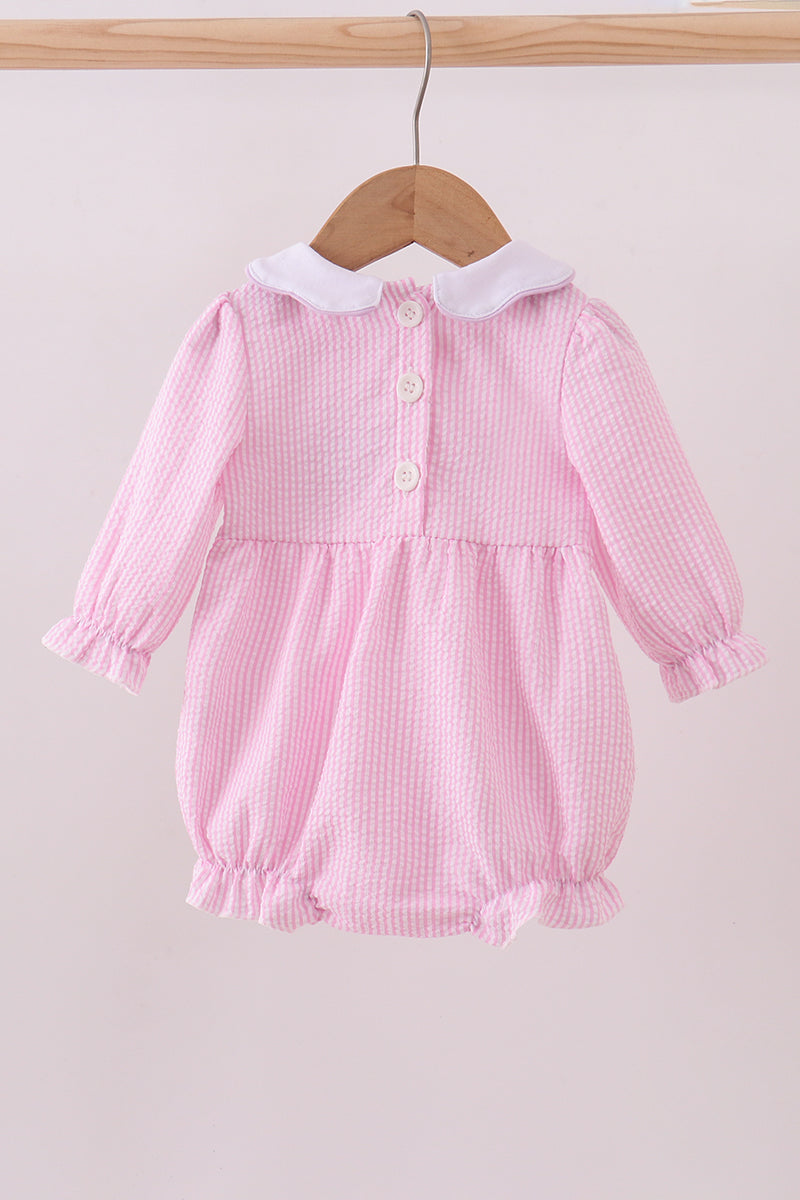 Pink puppy embroidery seersucker bubble