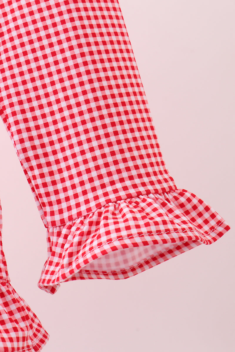 Elevate your wardrobe with this stunning red ruffle top, where Southern charm meets modern style. Featuring delicate Georgia embroidery that celebrates regional heritage, this premium piece combines intricate needlework with flirty ruffled details for an effortlessly chic look. Perfect for adding personality to casual outfits or dressing up for special occasions, this versatile top brings together elegance and fun in one fabulous package.